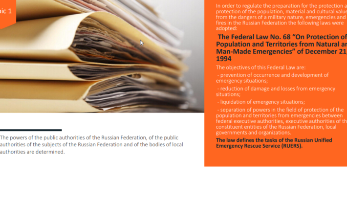 Курс обучения подготовлен для обучения председателей и членов комиссии по предупреждению и ликвидации ЧС и обеспечению пожарной безопасности. В нем собранны все основы как в области предупреждения и ликвидации ЧС различных видов, так и в области пожарной безопасности.