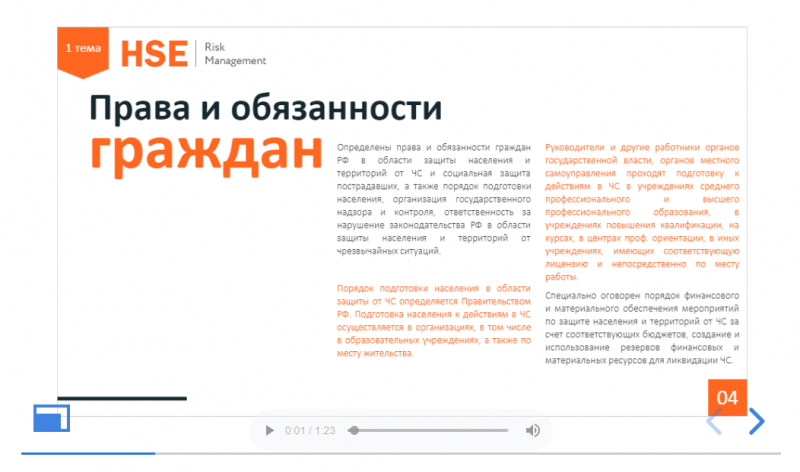 В результате прохождения обучения, слушатели приобретают знания о действиях при возникновении опасностей связанных как с военными действиями, так и в случае чрезвычайных ситуаций. Так же каждый слушатель сможет вынести для себя какие необходимо проводить подготовительные мероприятия: обучение, тренировочные занятия, инструктажи и т. д.