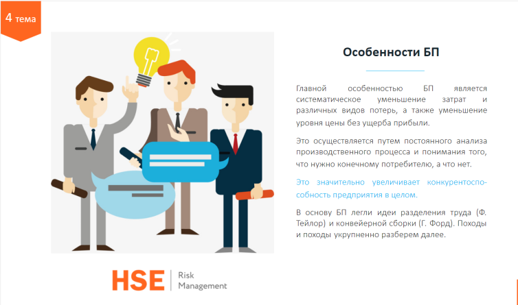 Данный курс обучения состоит из описания основных правил и методик, разработанных зарубежными и отечественными авторами, экспертами – исследователями бережливого производства.