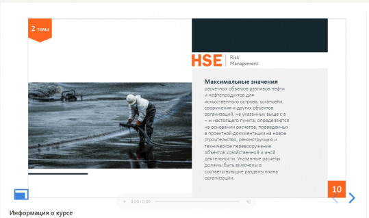 Обучение предусматривает изучение требований промышленной безопасности, обязательных для исполнения при осуществлении деятельности в области промышленной безопасности и ведении технологических процессов на опасных производственных объектах морского нефтегазового комплекса.